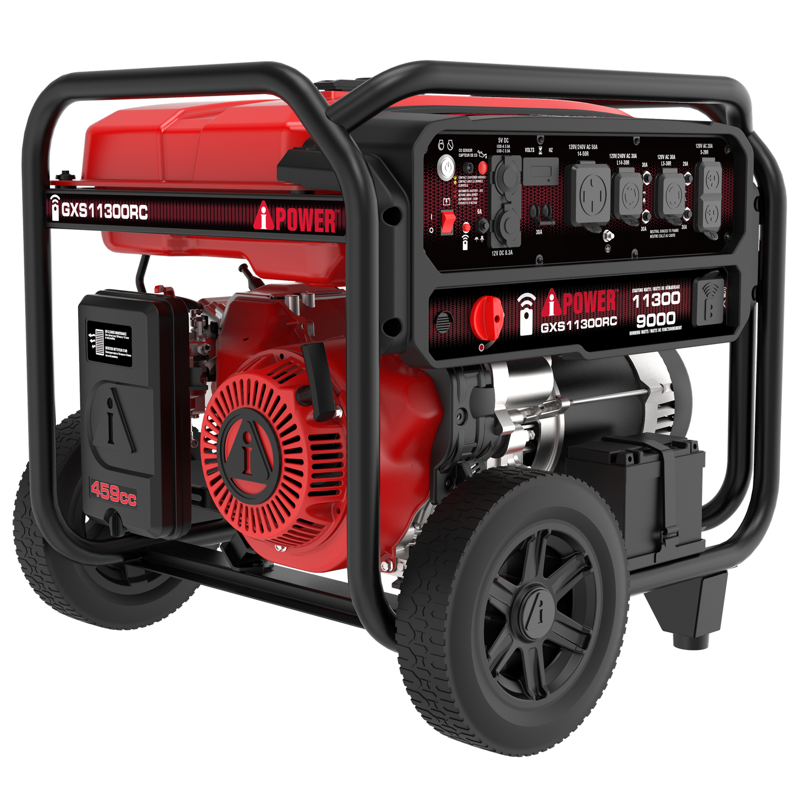 Featuring a 459cc OHV engine with cast iron sleeve and low oil shutdown, the GXS11300R Remote Control Portable Generator has