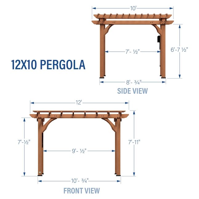 Enhance your backyard with the stunning Beaumont Pergola, where traditional design meets superior engineering. Constructed from 100% cedar wood, it exudes natural charm while providing lasting resistance against decay. From dinner parties to quiet morning coffee, the versatile design creates endless possibilities for your outdoor living space. Thoughtfully crafted with dual structural cross beams, robust support posts, and elegant corbels, this patio pergola delivers exceptional strength and enduring beauty. It’s Pro-Tect™ tested and proven to withstand winds of up to 100 mph* and includes thick, powder-coated steel anchoring plates, ensuring stability in the most extreme weather conditions. Our patented PowerPort™ features three USB ports and three electrical outlets to power a wide range of devices, lighting, and accessories. The trellis roof adds a beautiful classic aesthetic and is perfect for hanging potted plants or climbing vines. It also allows sunlight to filter through, creating a pleasant blend of light and shade that’s ideal for outdoor seating areas, patios, and gardens. This wooden pergola kit is ready to assemble with pre-cut, pre-drilled, and pre-stained components, while the interactive BILT® app provides guided instructions so you can build your backyard sanctuary with less hassle. Elevate your outdoor lifestyle with the Beaumont Pergola.