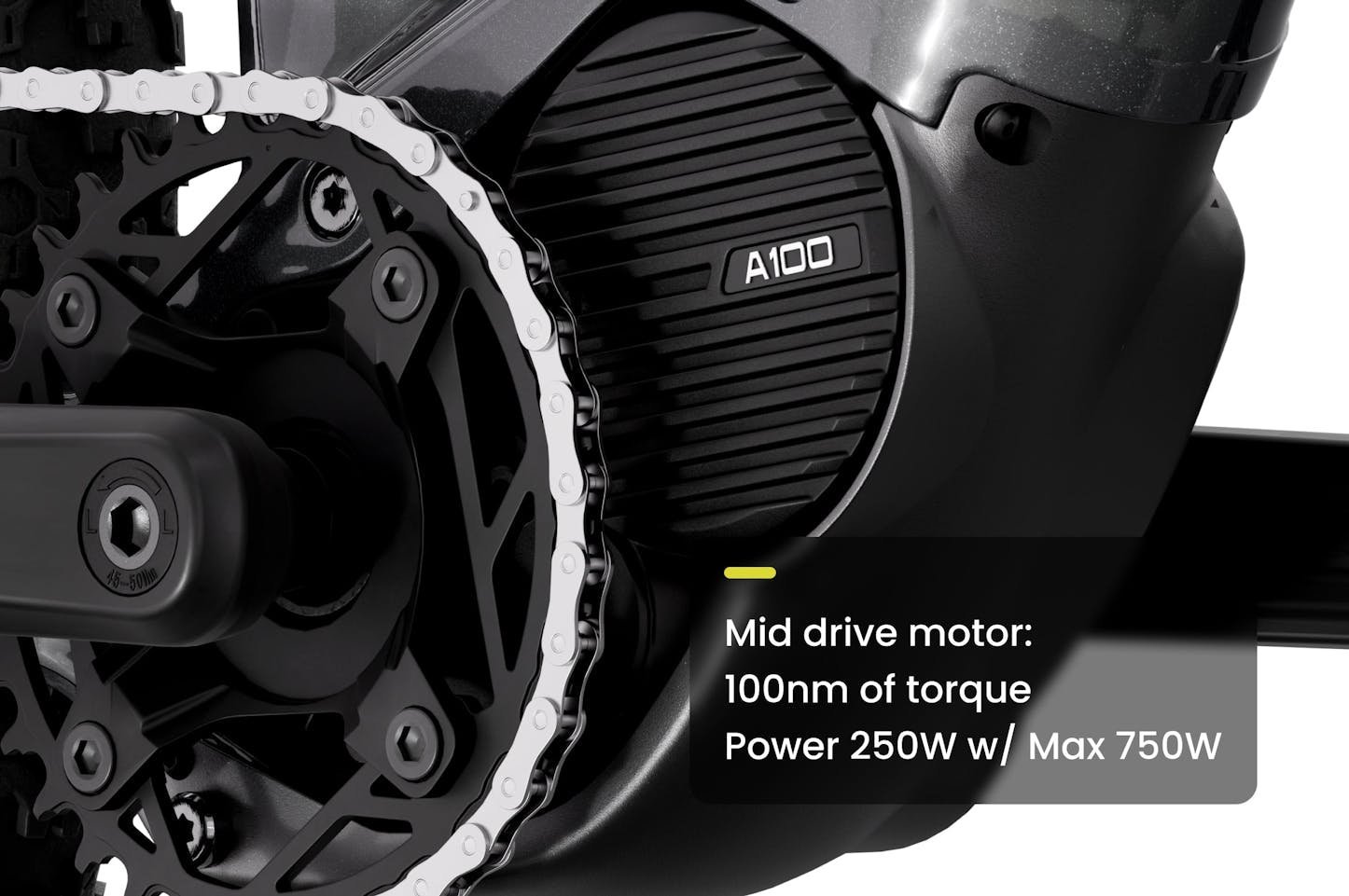 Motor: Aventon-designed Mid-Drive, 250W (Nominal) / 750W (Peak), 100 Nm torque