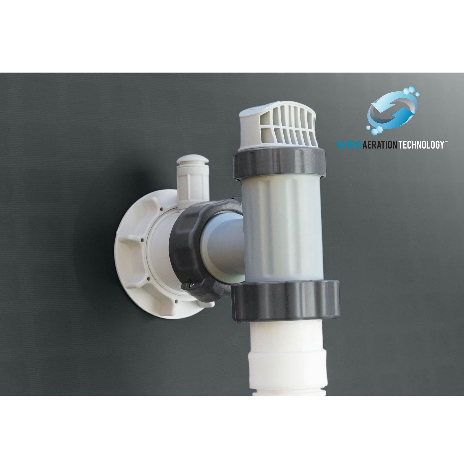 - Hydro aeration technology in the pump improves circulation, filtration, and water clarity while increasing the water’s negative ions