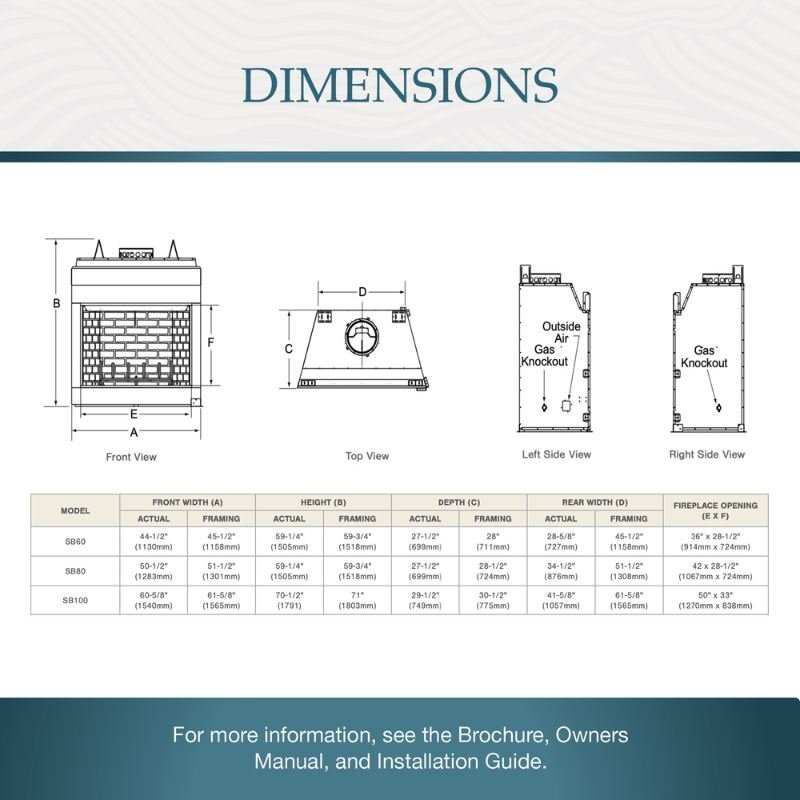 - Firebox Width:28″ | 34″ | 38 1/2″ | 47 1/8″ | 53 1/8″ | 59″