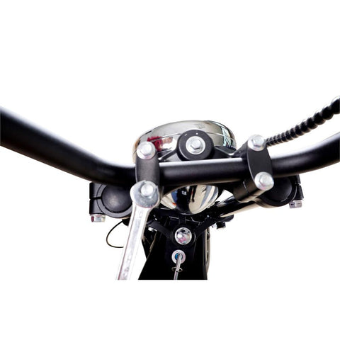 Do you need an affordable electric scooter for commuting? If you want a capable electric ride that will get you anywhere, the MotoTec Knockout Electric Scooter is for you. This handsome electric bike features a lowrider design with a barebone metal frame, large ape handlebars, and a set of extra-thick fat tires. This scooter is a perfect indulgent toy for adults and teens who want a no-fuss ride. The MotoTec Knockout Electric Scooter is an exciting ride featuring a 60-volt power supply and a more powerful 2,000-watt brushless hub motor for a zippy performance and off-roading capability. Each ride will put a smile on your face, without the harsh noise and vibration. This electric motorcycle can speed up to 25 mph and can ride on rugged terrain easily, so it is very capable and can be used for the pavement and for off-roading.