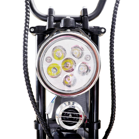 The MotoTec Knockout Scooter is equipped with a very capable 60-volt, 2,000-watt electric hub motor and extra-thick fat tires, so you are sure it will kick dirt and accelerate quickly whenever you twist the throttle.