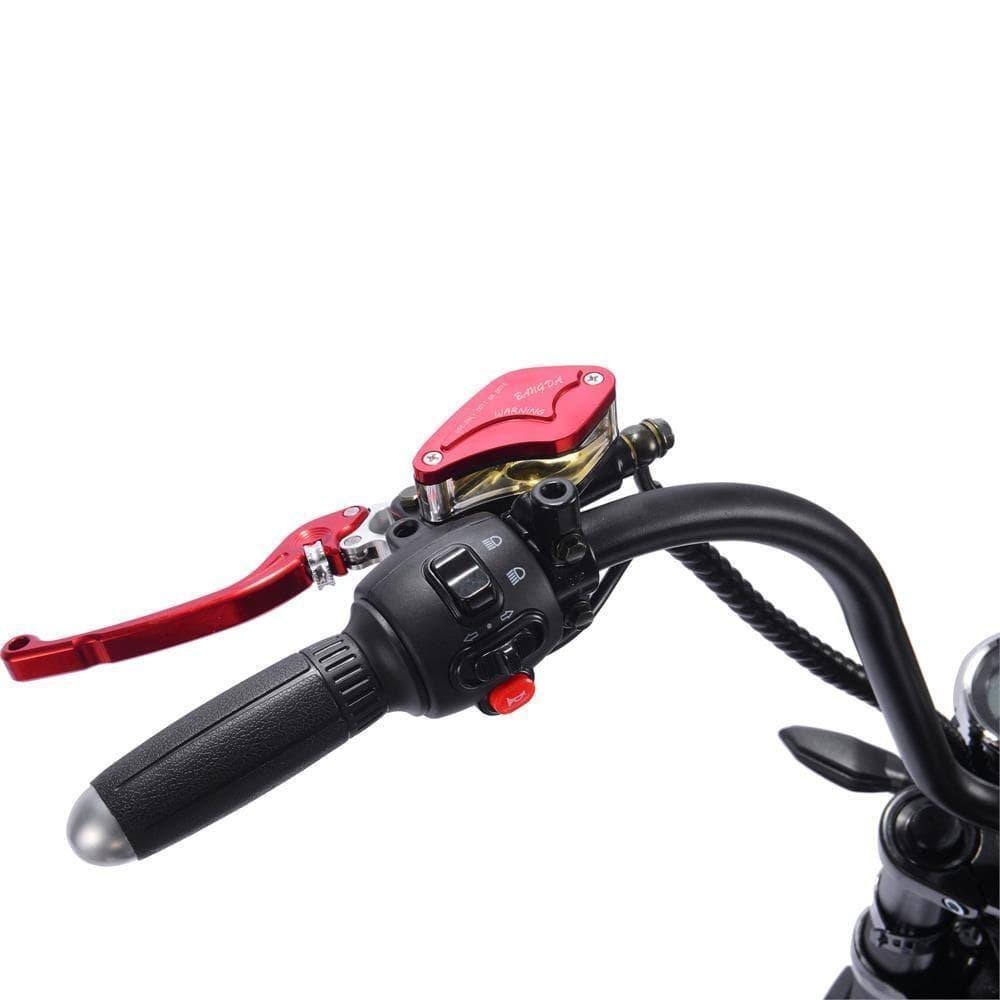 The MotoTec Lowboy E Motorcycle is equipped with a variable throttle and a set of high-performance hydraulic disc brakes so it accelerates and stops smoothly. The throttle is easy to use and allows you to zoom on the road. The bike comes with a stylish traditional-style interface like in a real motorcycle.