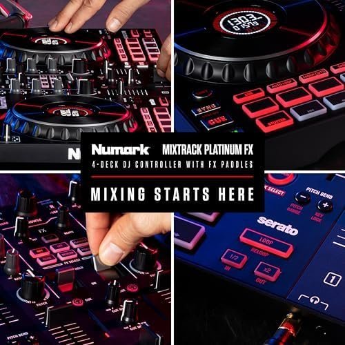 Numark Mixtrack Platinum FX Serato DJ Controller with Jog Wheel Displays, 4 Decks, Mixer, Effects Paddles and (Audio Interface)